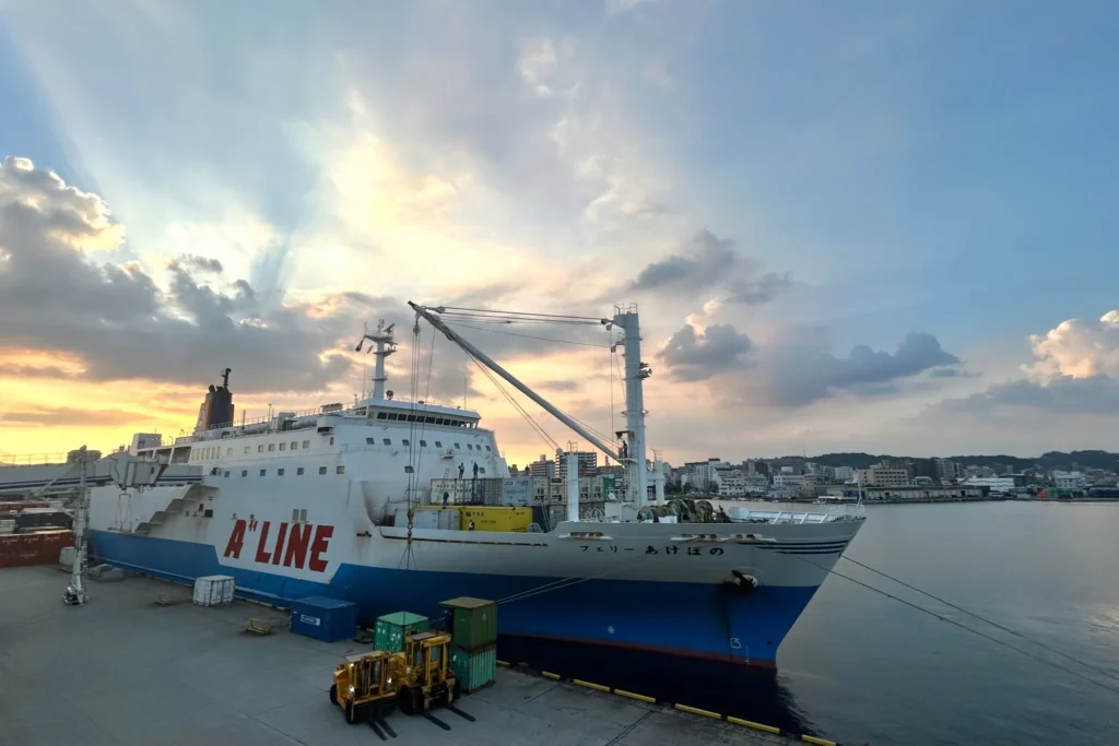 程なくして、乗船案内が始まる。鹿児島-沖縄航路は「マルエーフェリー」と「マリックスライン」の2社が運航しており、おおよそ隔日で両社の船が出航する。どうやら、この日はマルエーの「あけぼの」に乗るようだ。