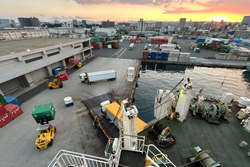 港のボーディングブリッジから船へ乗り込むなり、かさばる荷物を二等船室の指定エリアに置き、デッキからの景色を見に行く。岸壁では、フォークリフトや、島へ向かうトレーラートラックが忙しなく動き回っている。少し遠くの桟橋では、種子島行きの貨物フェリーが汽笛を鳴らし、一足先に港を出ていく。さらに岸壁の反対側、桜島がある方向を見遣れば、トカラ列島からの旅客船が港へ帰ってくる。まだまだ鹿児島は暑い時季だが、それでも夕方の潮風は、この喧騒の中で些か心地よく感じられた。