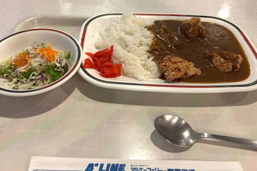 1時間弱しか営業しない船内レストランでカレーを頬張っていると、知らぬ間に船が岸壁から離れ始めている。最初の目的地・名瀬まで、おおよそ11時間の航海が始まった。